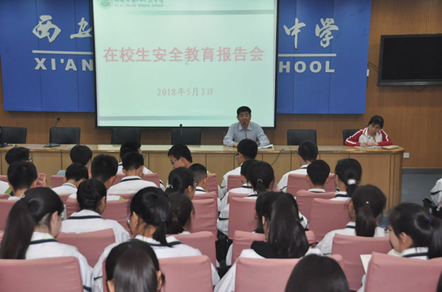 为了提高全体住校生安全防范意识,共筑校园安全防线,2018年5月3日晚,由校安保处屈军主任为全体住校生做作了一场严肃而深刻的安全教育报告会。 首先,安保处主任屈军针对发生在陕西省榆林市米脂三中多名学生被砍伤的恶性案件进行通报。其次,报告分别从交通安全、...