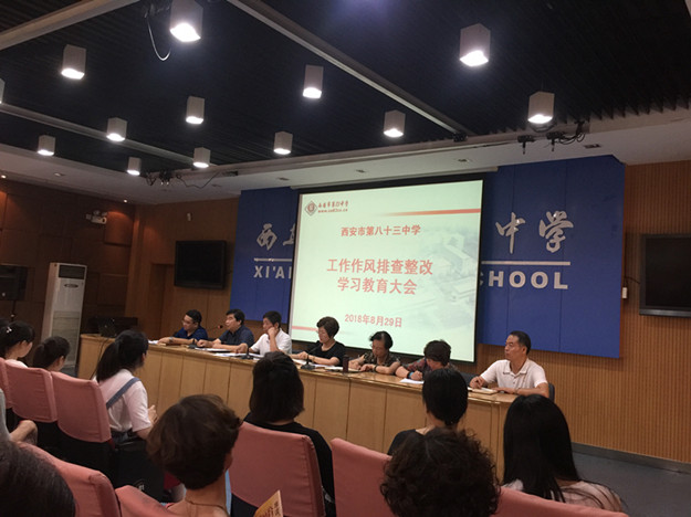 西安市第八十三中学开展办学规范化及工作作风问题排查工作 开学在即,为确保教育教学行为规范化和保障学校教育教学工作按期顺畅进行。8月28日下午,西安市第八十三中学副校长李勇主持下召开了全校行政人员工作会议。学校党总支书记李瑞民及全体中层干部和行政人员参加了...