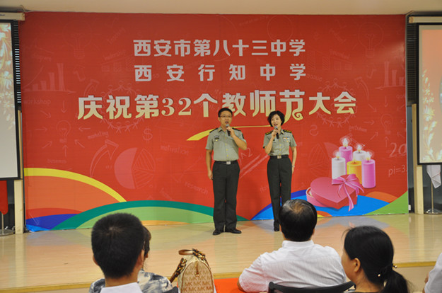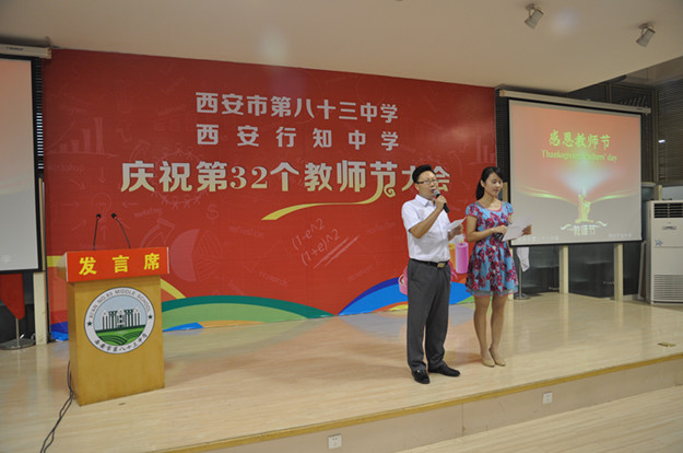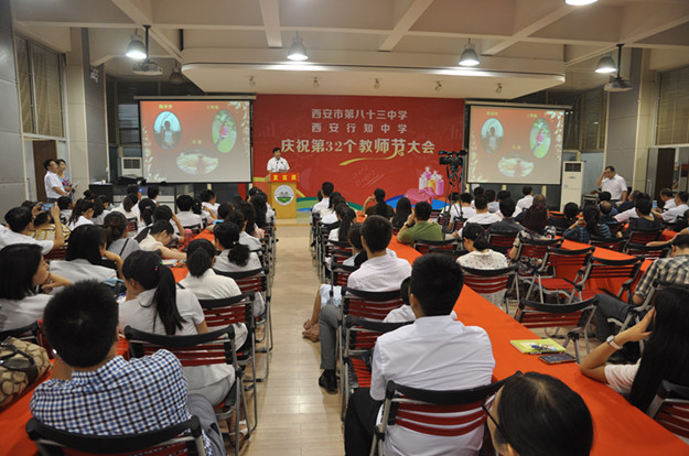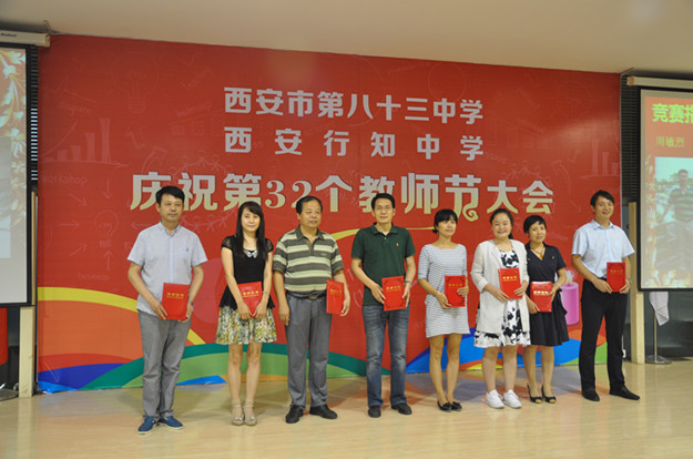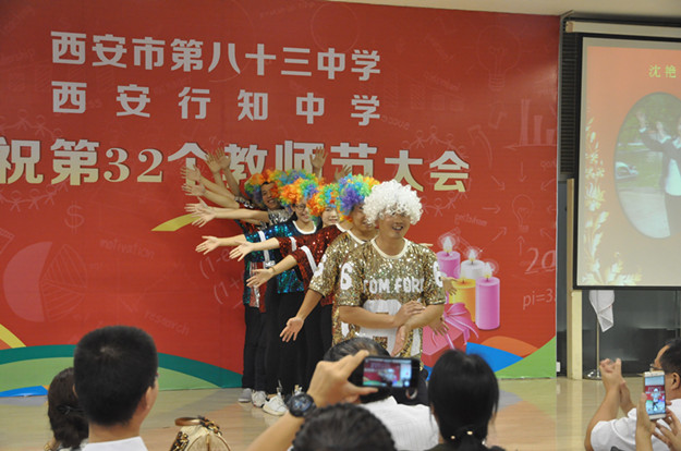 颁发奖项期间,学生们为老师送上了自己最真挚的祝福,并由我校学生表演了她们精心编排的舞蹈《乡韵》。大会最后,由来自西安行知中学一群充满活力的年轻教师的《歌舞串烧》将大会推向了高潮,现场掌声阵阵,这掌声表达着老师们内心的欢乐和感动。伴随着这份欢乐和感动,大会在温馨的氛围中圆满结束。