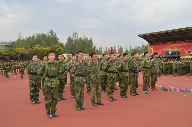 时间很快,下午的训练结束了,有序吃过晚饭,稍事休息,整个操场又是团团绿色,在无星无月的夜晚,四周一片黑,只有训练场的灯光闪耀,为同学们的训练照亮。
