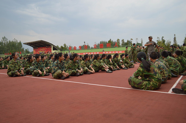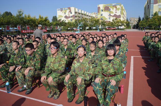 楼下集合地点,有的同学也许是第一次起这么早,有的同学也许兴奋得昨夜无眠,总之还睡眼朦胧呢,甚至衣衫不整。这样,教官们只能在集合中及时督促、强调军容军姿,让孩子们尽快适应军训节奏。随即,奔赴操场进行跑步锻炼。寂静了一夜的操场沸腾了,巨型绿色长龙在游走,口号声响彻基地校园。