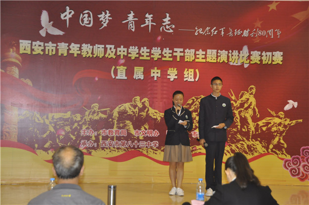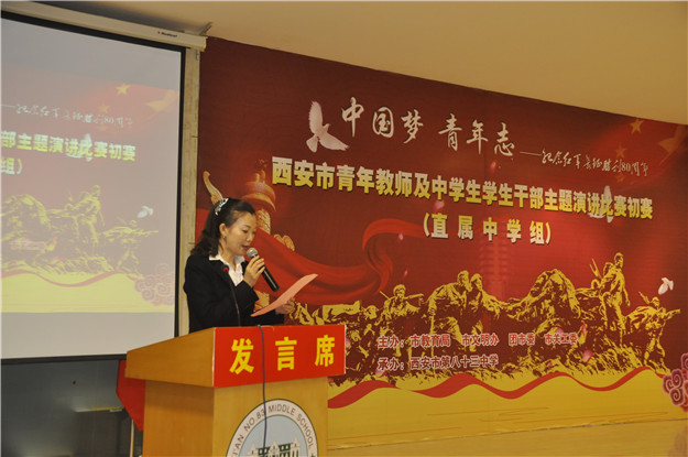 10月14日,由市教育局、市文明办、团市委、市关工委举办的“中国梦·青年志”——纪念红军长征胜利80周年西安市青年教师及中学学生干部主题演讲比赛初赛直属中学组比赛在我校报告厅举行。西安市教育局团委王丽琼书记及直属中学各校的团委书记出席了本次活动。