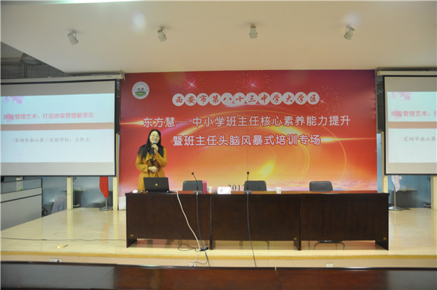 参加本次活动的有来自陕西省各地教育局、教研室、教培中心、研训中心、名师工作室、名班主任工作室、进修学校的相关领导和德育教研员,还有各中小学(含中职)校长、书记、德育校长、德育主任、年级组长、团队干部以及中小学班主任、辅导员和老师,我校全体班主任和青年教师参与了本次活动。本次培训邀请到的专家之一王怀玉老师,任教于深圳南山第二实验学校,是全国知名科研型班主任、深圳市首届中小学班主任工作室主持人、广东省名班主任、南山区德育精英兼职教研员、《班主任之友》封面人物,著有《小学家校沟通的艺术》等个人专著4部。另一位专家是谭细龙老师,他是全国著名德育专家,国家二级教授,享受政府专项津贴专家,教育部国培专家库专家,武汉大学、华中师范大学、湖北师范大学兼职教授,硕士生导师,湖北省教育学会副会长,中国陶行知研究会阳光教育研究院副院长,《班主任之友》资深编辑,著有《班级管理理论与实践》等著作十余部,各地做讲座已近千场。