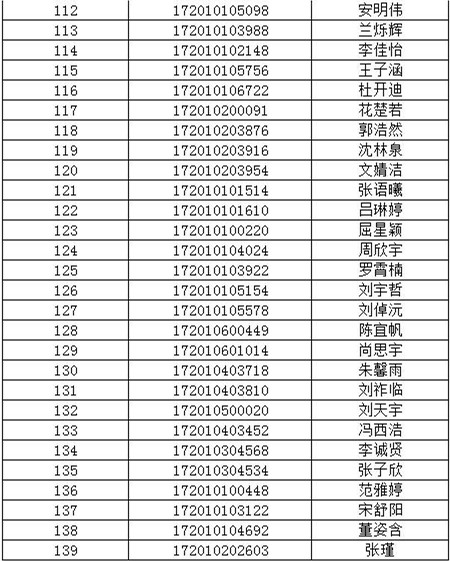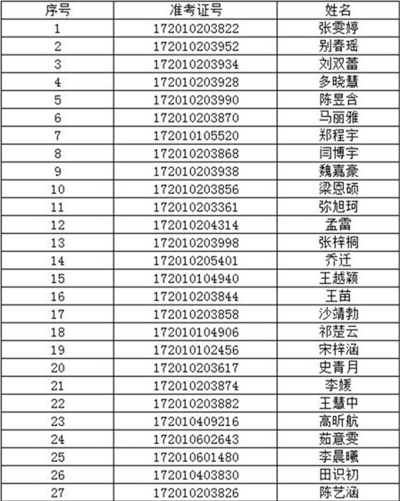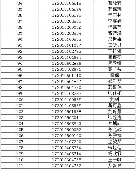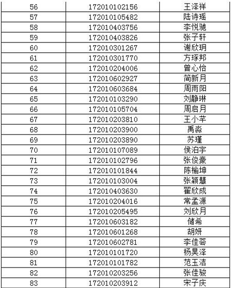 西安市第八十三中学2017年高一新生录取名单(城六区)