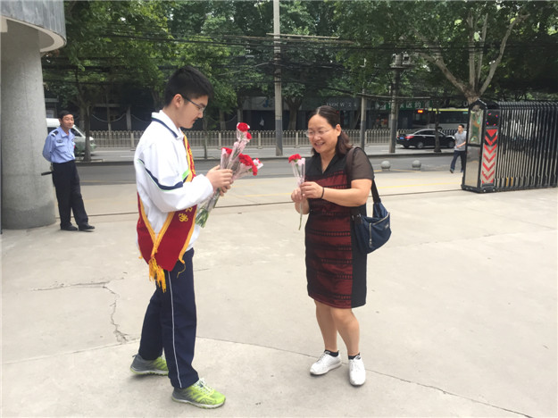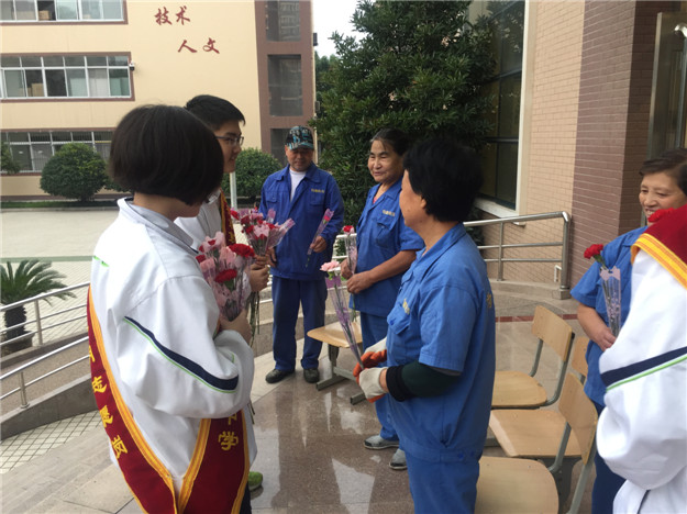 除了给每一位教师送花,学生们还来到安保处、餐厅、宿管处等后勤部门给这些服务83中的职工送去了祝福。感谢他们的匠心精神,让八三变得美丽整洁,秩序井然。
