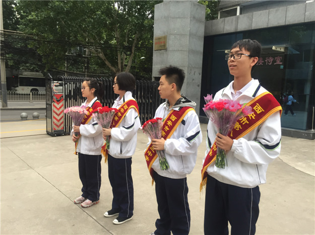 9月8日,星期五,我校校园内桂花飘香,一大早就弥漫着丝丝甜意。清晨6:55分,青年文明岗的同学在校门口列队整齐,手捧康乃馨,迎接每一位到校的老师。