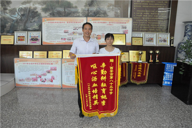 2017年9月12日下午,我校排球生家长代表一行十余人送来三面锦旗,表达对学校以及学校排球队的感激之情。我校排球队在教练员刘淑华老师和郝彬楠老师的带领下连年在省市比赛中取得优异成绩,在今年5月份的西安市第十六届运动会排球比赛中卫冕青少年男子组冠军,获得女子组亚军;7月份在陕西省青少年排球锦标赛中我校女队获得冠军,男队获得亚军;8月份代表陕西省参加2017年世界中学生排球锦标赛获得第六名的好成绩。