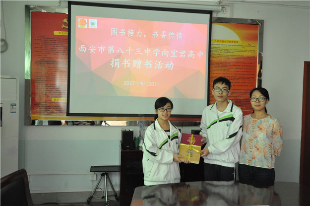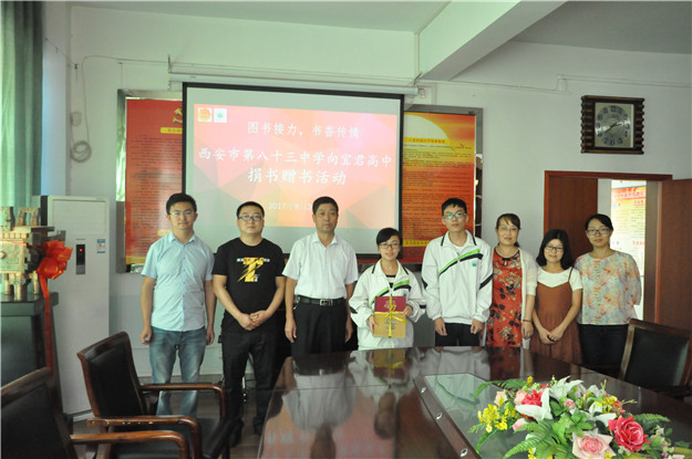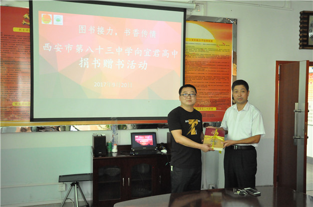 2017年9月20日下午,我校在图书科技楼二楼会议室举行了“图书接力,书香传情”向铜川市宜君高中赠书活动仪式。我校教师代表、学生代表与宜君高中教师代表汇聚一堂,校党总支书记李瑞民参加了此次活动。