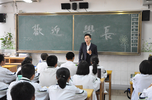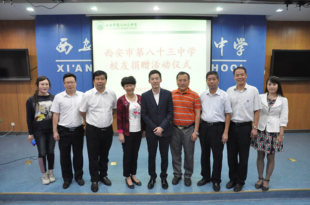 2017年9月22日下午,我校60周年校庆到来之际,我校2005届校友李文轩来到母校,为母校送上诚挚的祝福,同时在我校二楼养怡厅向母校捐赠助学基金,并设立了“李文轩英语奖学金”。