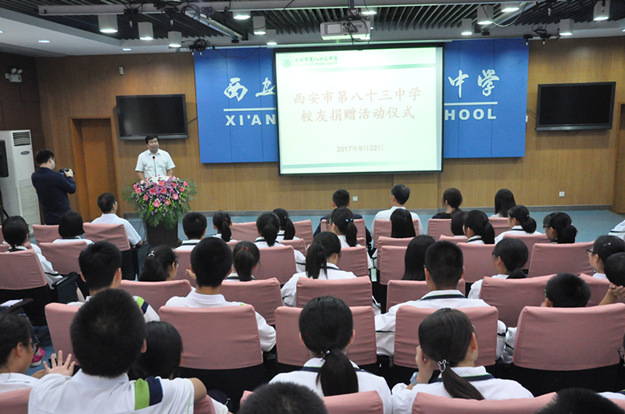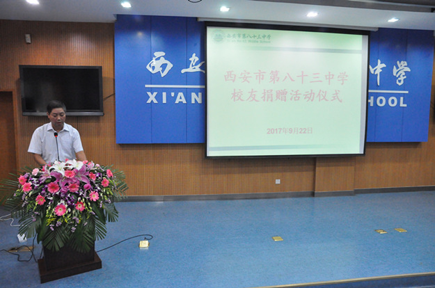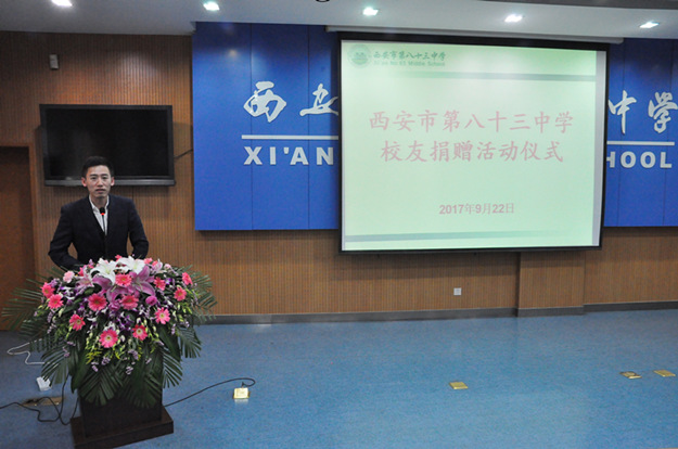 为了让李文轩同学的捐助充分发挥激励作用,激发八十三中学子学习英语的热情,全面提高我校英语学科的教育教学质量,校领导研究决定,成立“李文轩英语奖学金”管理小组、监督小组,并制定了《“李文轩英语奖学金”发放方案》。捐赠仪式由我校党总支书记李瑞民主持,在捐赠仪式上,我校副校长李勇宣读了《“李文轩英语奖学金”发放方案》,随后,刘校长发表了重要讲话,他代表学校对李文轩同学的捐赠表示感谢,同时希望我校学生向李文轩校友学习,发奋图强,在取得事业成功的同时,能够情系母校,心怀天下,报效祖国,报效社会!