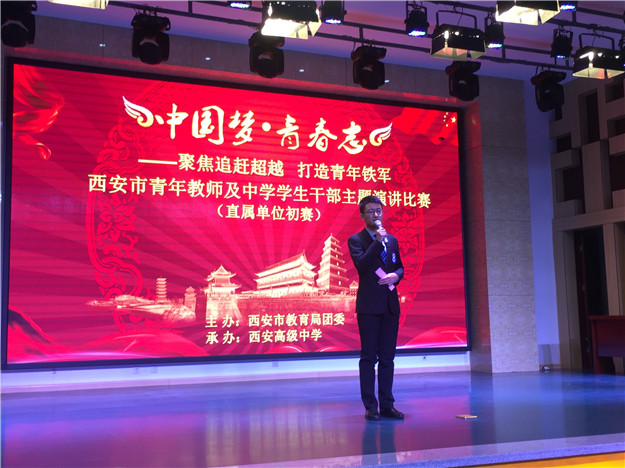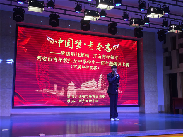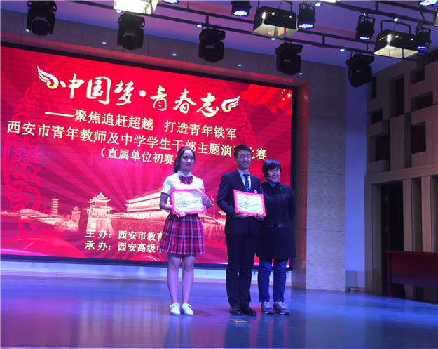 10月11日下午,由市教育局组织的“中国梦·青年志”西安市青年教师及中学生学生干部演讲比赛直属组比赛在西安高级中学举行,我校教师白永龙与学生柯开源分别荣获一等奖与二等奖的好成绩。白永龙老师将代表直属单位教师参加市级比赛。
