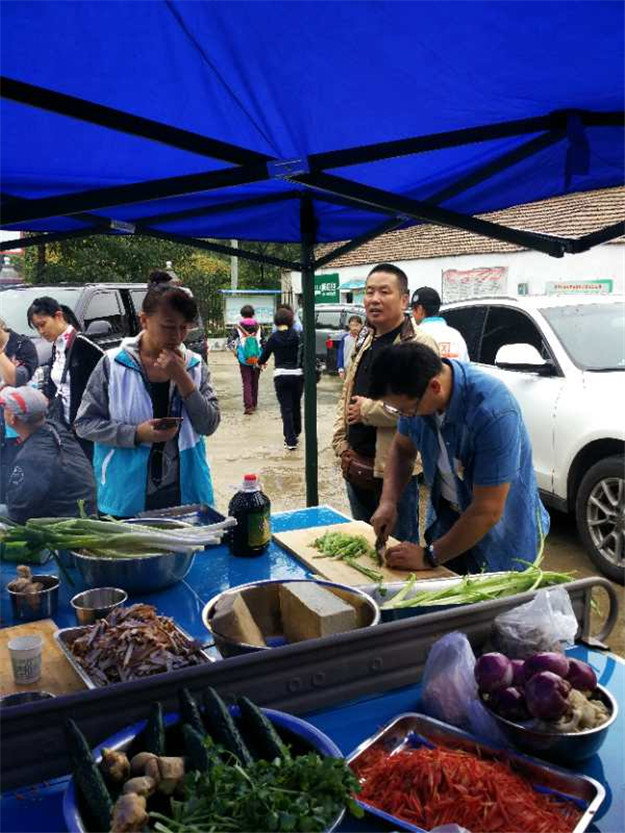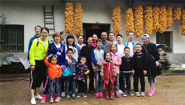 Then some volunteers were divided into four groups and each group visited a family. Meanwhile, other volunteers began to put up a pavilion10 in the yard to cook delicious mutton food for the children. My family was arranged to visit a girl’s family. Along a muddy path leading up a hill, we covered11 about 300 meters and reached her family. What impressed me most was that it was an adobe12 house. There were plenty of golden corn cobs13 hanging on the front adobe wall, each cob with full grains. The hanging corn cobs looked like yummy14 Tianjin Fried Dough Twists15 from afar16, which made our mouths water. The host gave us a warm welcome. We donated a bag of rice and a pot of refined17 rape oil18 to him. He accepted them cheerfully. During the conversation with the host, I was surprised to learn that he is disabled and his wife is insane19. His daughter, who was four years old, seemed a bit bashful20 among strangers. My daughter and other children volunteers talked and played with the shy little girl. They donated her some pencils and some toys, which made her very happy. Finally, we took a photo together and came back to the office of the village committee with the little girl and her father.
