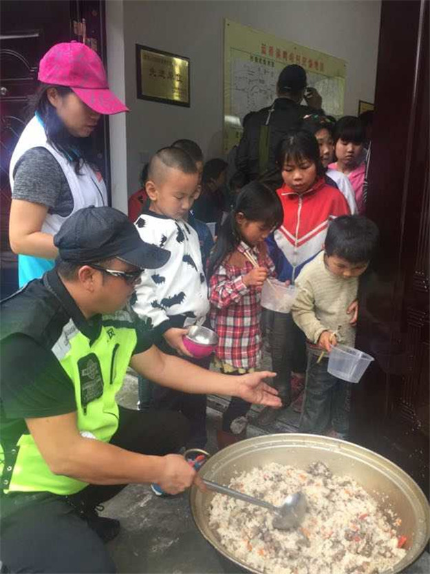 On the way back to the office, my daughter told me that she never thought the little girl could cherish the pencils so much. I told her there are still many people living in poverty21. Be kind to them and treasure what you have. On walking into the yard, we were glad to find the mutton food was ready. We asked the left-behind children and their grandmothers and grandfathers to eat first. They enjoyed the food very much, which made us very happy. Because it was raining hard, not all the children were present. As a result, there was some food left, so we volunteers ate the remaining food. Over lunch, I asked the headmaster how many students and teachers there are in Yayu Primary School. He told me there are sixteen students in different grades and three versatile22 teachers, who teach Chinese as well as math, even English and PE. I had never thought such things should have happened in the countryside. What he said put me in deep thought .What on earth are the problems?