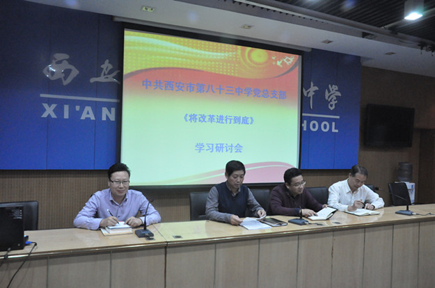 李瑞民书记还指出,在新形势下,我校要更好地总结各地党建的新探索和新经验,有效增强党员的先进性与纯洁性,特别是要在实际工作中,充分发挥党员的模范带头作用,为打造西安市第八十三中学教育铁军而努力奋斗,为打造西安教育铁军助力添彩。