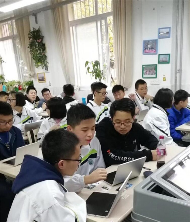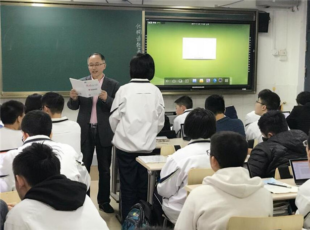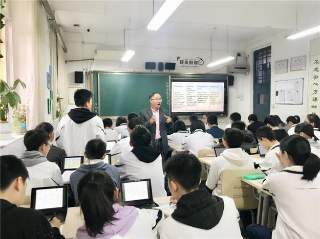 11月1日上午第三节课,刘少文老师利用电子辅助学习工具,给来我校访问的台湾南山中学16位学生与我校高二11班的30位同学上了一堂精彩的英语写作课。
