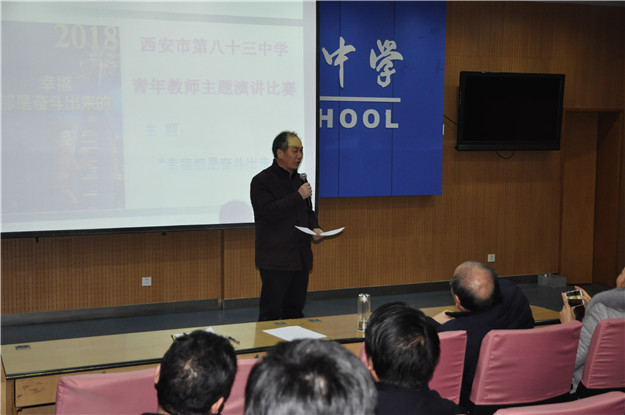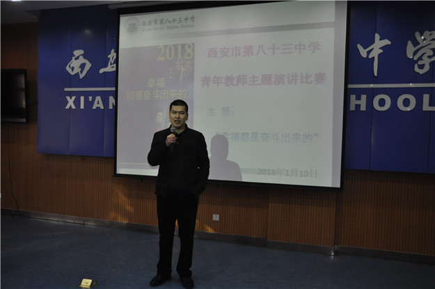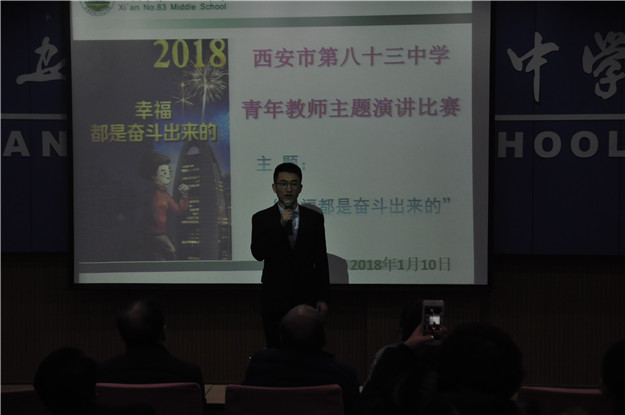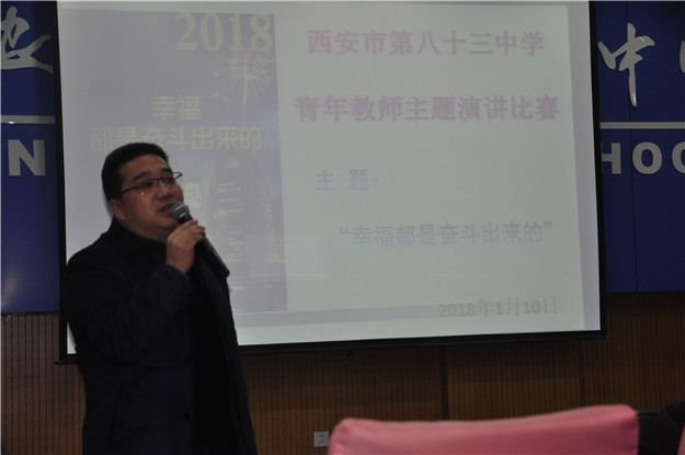 2018年1月10日,我校2018年青年教师基本功大赛之演讲比赛如期举行。比赛分为文、理两组,每组各12人,分地点同时举行。文科组比赛在录播教室进行,由王岚、王晶、刘少文三位老师担任评委。理科组比赛在多功能厅进行,由王元珠、刘康民、张红丽三位老师担任评委。比赛分别由教务处副主任苏元平和教科研处副主任唐颖鸿主持。演讲主题以国家主席习近平在2018年新年贺词中的一句振奋人心的话——“幸福都是奋斗出来的”——为主题,要求各位参赛选手围绕主题自拟题目,进行5分钟脱稿演讲。