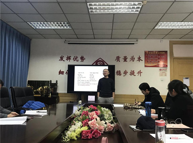 1月29日下午前三节课,英语组大学区教研活动在我校一楼会议室举行,刘少文老师在会上作了主题为《新课标,新高考,新奋斗》的专题报告。英语组全体教师、行知中学英语教师及宜君跟岗教师参会。本次教研活动是英语学科委员去苏州多所中学交流学习返校后与老师们的经验分享。