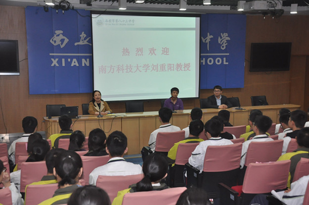2018年3月16日下午4:00,我校特邀南方科技大学化学系刘重阳教授于我校多功能厅为广大学子呈现了一场精彩的讲座——揭秘动画片《男孩和他的原子》。聆听本次讲座的有我校高一、高二创新实验班的全体同学和高三部分同学。