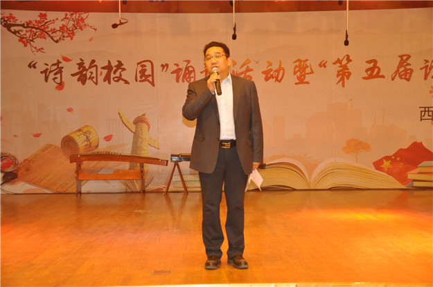诗会在高二11班的诗朗诵《春江花月夜》中缓缓拉开帷幕,让全体观众在幽美邈远的月夜中走进诗词盛放的古代;接着,校舞蹈队带来的现代舞《时间都去哪儿了》让我们感受到了时间的珍贵,青春的短暂;高二1班的古诗吟唱加歌伴舞《所谓伊人》使人感受到了婉约之美,特别是男主唱反串技巧精湛,让观众惊喜连连;来自西安广播电视台资深主播、新闻评论员李诚老师为我们献上了一首《将进酒》,磅礴大气,豪迈雄厚;来自民乐社和高一1班的同学带来的诗歌情景剧《击鼓》如怨如慕,如泣如诉,让师生沉浸在悲壮的爱国故事中;紧接着,外请嘉宾李诚老师与中央人民广播电台“夏青杯”朗诵大赛获奖者王超老师合诵一首《相信未来》,让同学们感受到奋斗的动力、坚持的魅力和明天的美好;教师组带来的《春之歌》阳光烂漫,正可谓明媚春光无限好,惜春勤学方报春;最后,高一年级全体学生朗诵的《蜀道难》豪放而有气势,为这次诗会画上了完美的句号。