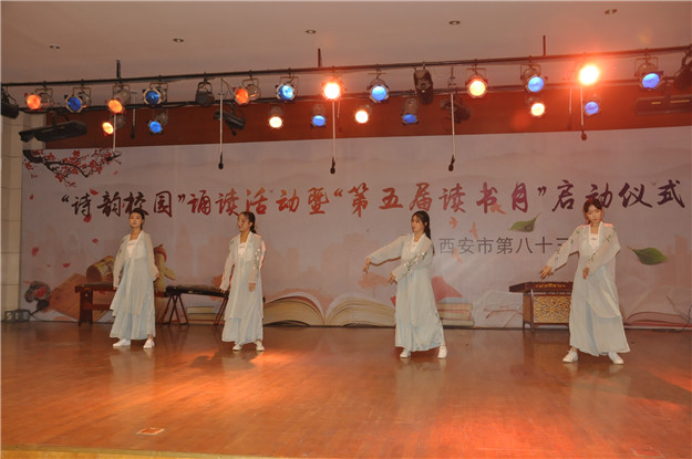 2018年4月4日, “诗韵校园”清明诵读活动暨第五届读书文化月启动仪式在校体育馆二楼举行。诵读活动融合古诗词朗诵、古诗吟唱、歌舞表演等多种艺术形式,为我校师生奉献了一场精彩的诗词文化盛宴。高一、高二年级的师生参加了本次活动。