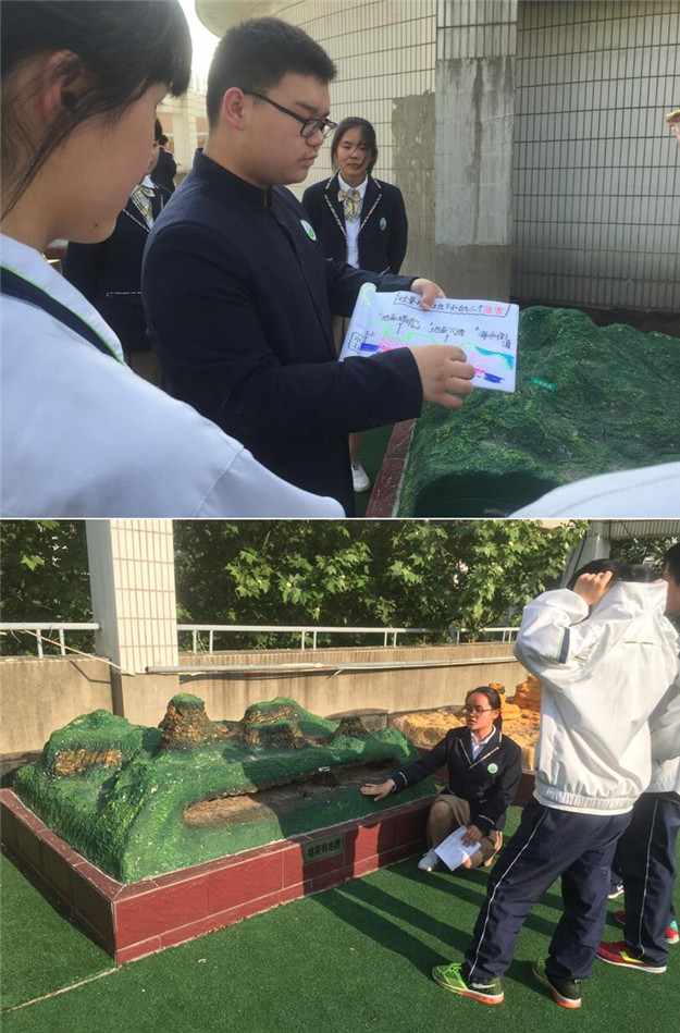 我校地理园陈设地动仪、立体世界地形图、水循环示意模型、地质构造地貌模型等共18套设备。高一年级各班地理爱好者提前选取自己感兴趣的模型,利用课余时间搜集模型相关资料,就研究学习过程中的发现和遇到的问题与同学讨论、与老师交流,很好地理解了复杂的地理模型,并用易懂的语言、生动的例子、新颖的形式、清晰的图表对地理模型进行了深刻的解读,为全校师生贡献了一场地理学科盛宴。
