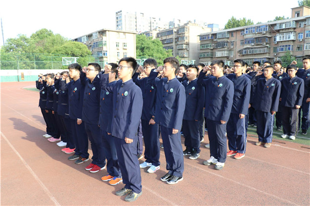 庄严的国歌拉开了本次大会的序幕。在雄壮的国歌声与众人的注目礼中,五星红旗高高飘扬。全体师生面对国旗唱响了国歌,树立理想、勤奋学习、顽强拼搏、立志成才的信心和决心伴随着爱国情怀激荡而出。