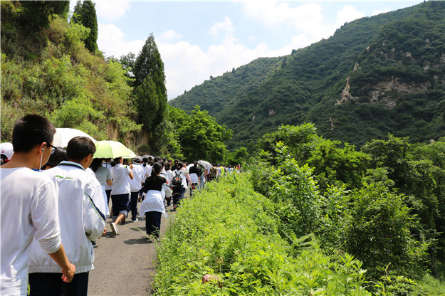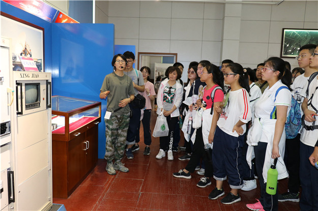 聆听了军事国防报告后,同学们开始了第一天的重头戏——参观航天军事博物馆,攀登天留山。青山巍峨,风光旖旎,同学们一路南上,豪迈齐诵:“蜀道难,难于上青天!”到了航天军事博物馆,同学们了解了我国卫星测控的历史,看到了我国卫星测控的先进设备,感受到了“上可九天揽月,下可五洋捉鳖”的国防实力,爱国之情油然而生。