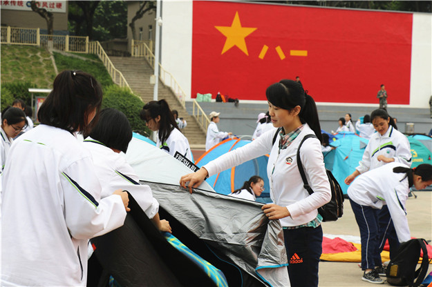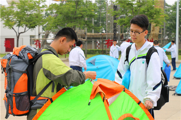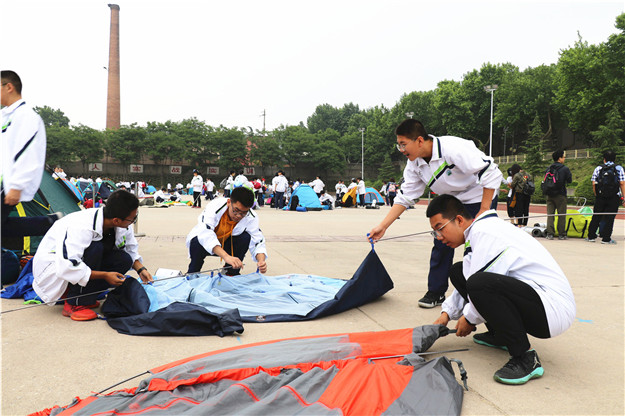 5月25日,同学们走进了中国卫星测控中心桥南大队,体验军旅生活,锻炼军人气质,磨练坚定意志,树立团队精神。早晨八点整,同学们带着行李兴冲冲地列队出发。到达卫星测控中心桥南站,同学们前往大操场分工合作搭起帐篷,一个个帐篷拔地而起,很像朵朵盛开的五彩小蘑菇,为中国卫星测控中心桥南大队增添了靓丽的色彩。