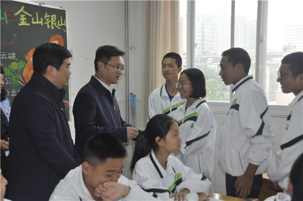 姜局长一进校就走进课堂,观摩了创新实验班和宏志班课堂教学工作,并对宏志班的西藏内地插班生进行了慰问,询问了他们的学习和生活,希望西藏插班生尽快适应新的环境,尽快融入大家庭,快乐生活、快乐学习。