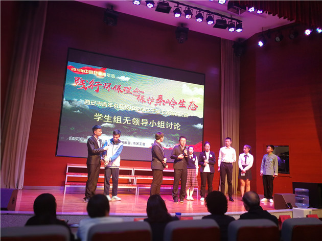 围绕“践行环保理念,保护秦岭生态”主题,来自西安市教育局直属单位的13名教师选手和9名学生选手依次进行了声情并茂的演讲。选手们思路清晰、大方得体,时而语调轻柔、娓娓道来,时而钪锵有力、激情四射,表达了对于秦岭的关切与热爱。我校教师选手储敏,她自信的神情、镇定的姿态、悦耳的演讲,赢得了在场观众的喝彩。我校学生选手杨承坤讲述了秦岭从山清水秀到人为破坏再到重回青山绿水的故事,特别是在无领导小组讨论中,他镇定自若,谦虚稳重,思路清晰,成为了全场最耀眼的明星。除了无领导小组讨论,选手们还经历了即兴演讲等高难度环节的考验,能够笑到最后的才是真正的hero。