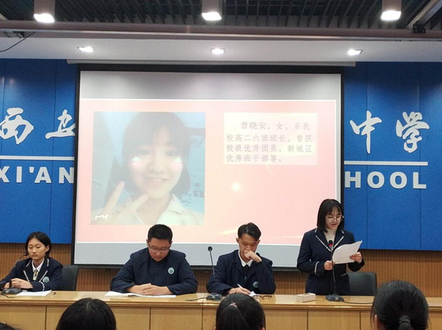 接着,第十四届副主席李明瀚宣读《西安市第八十三中学共青团学生会选举办法(草案)》,在监票组、计票组的监督下,通过无记名投票选举的方法。最终会议通过决定主席白珂硕,副主席郭浩然、陈驰宇,组成第十五届学生会主席团。