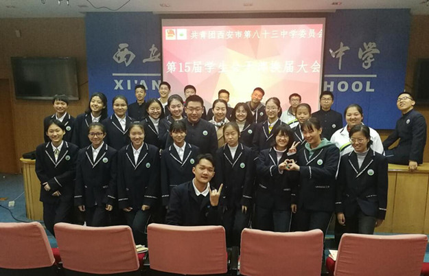2018年11月7日下午4时,西安市第八十三中学第十五届共青团学生会换届大会于我校图书科技楼多功能厅成功举行。会议由第十四届、第十五届学生会成员及校团委苏楠老师等代表共29人参会。