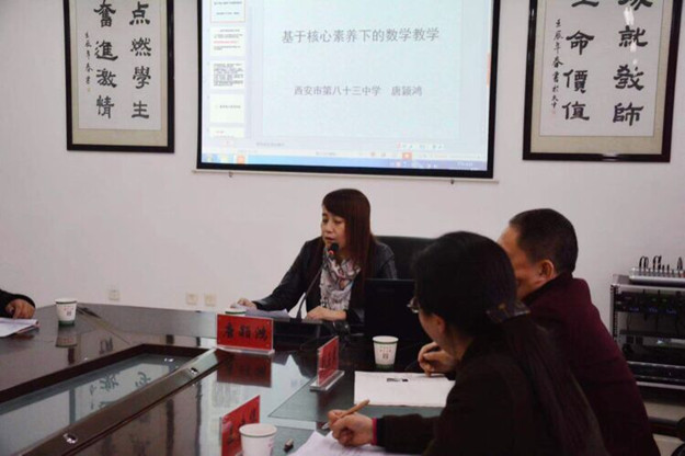 之后,在起凤楼四楼会议室开展了教学研讨活动。首先,三位名师工作室主持人先对三节示范课进行了点评,接着他们各自做了关于数学文化、数学思想、核心素养的报告。唐颖鸿老师为所有到会教师做了一场以《基于核心素养下的数学教学》为主题的报告,她从研究核心素养的意义出发,全方位、高视角地诠释了数学六大核心素养的内涵和意义,解读了数学抽象、逻辑推理、数学建模、数学运算、直观想象、数据分析等素养在课堂教学中的落实策略,同时她结合今天上课的课例以及自己多年教学的宝贵经验,介绍了如何在课堂教学中更好地落实数学核心素养,对于如何上好数学课提出了自己独到的见解,使到会的所有数学老师深受启发,老师们听课后受益匪浅。