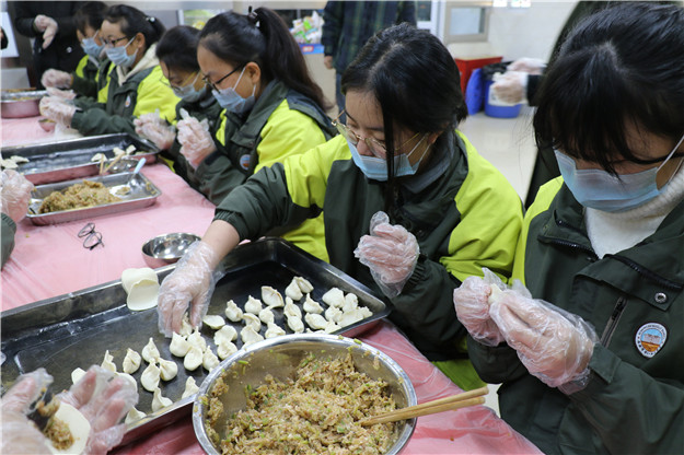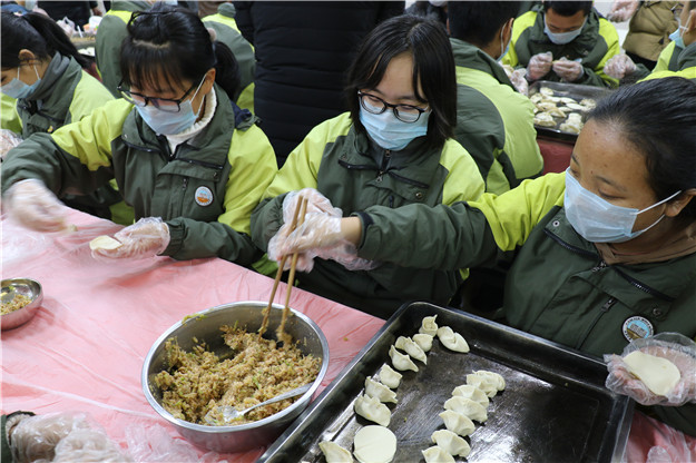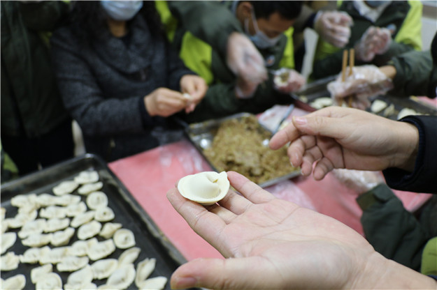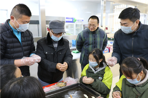 2018年12月20日中午,我校小餐厅分外热闹,这里正在举行一年一度的冬至藏生包饺子活动。