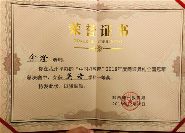 ——我校余澄老师在“中国好教育”2018年度同课异构全国冠军总决赛获奖