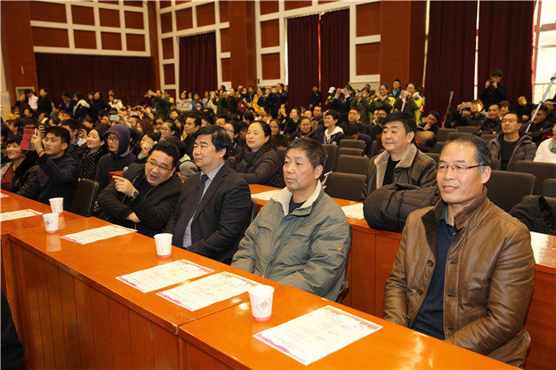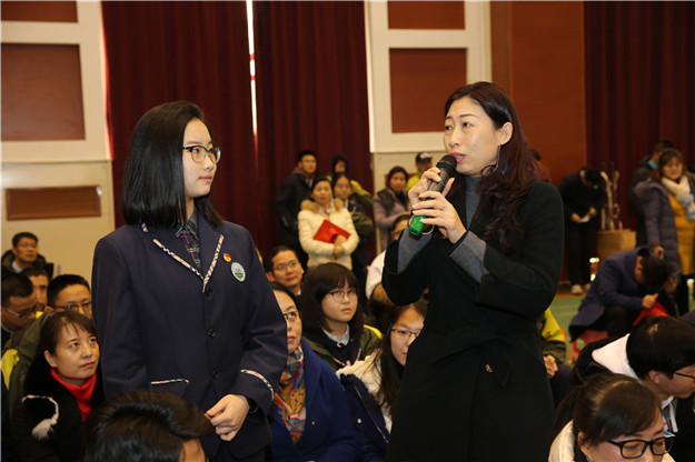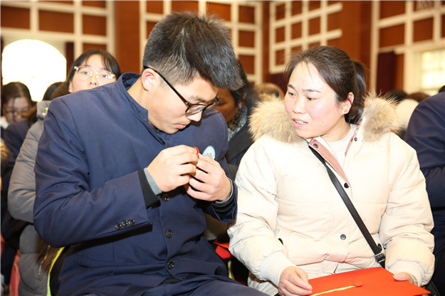 在第一篇章“感恩”中,大屏幕播放了学生童年与现在的对比照片,屏幕上可爱、淘气、憨厚、调皮的儿时形象充满童趣,令大家开怀一笑??赐暾掌鞒秩硕杂谙殖」壑诘乃婊煞糜秩盟腥嘶氐蕉钡耐嬗肜寐小W詈?,由高三1班、2班同学带来的歌舞串烧给大家展现了青春的气息,让所有人在耳熟能详的旋律中回忆着自己的成长与改变。随后,高三9班情景剧《给妈妈》让在场父母与孩子为之一动,留下了感动的泪水。在场的每位学生都收到了来自父母的一封家书,他们用从未有过的认真来阅读这封信,把这些文字深深地记在心里。接着,11位神秘家长走上了舞台,学生奔向自己的父母,父母为学生赠送礼物并赠与感言,场面动人。
