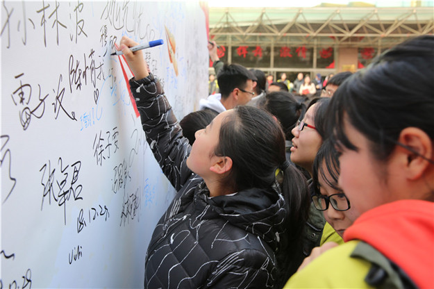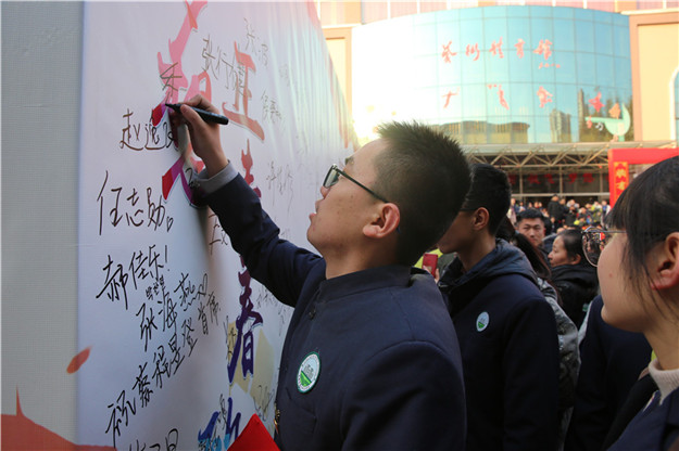 仪式结束后,老师、学生、家长在祝福墙上签名留影,永远难忘这一成长的精彩时刻。