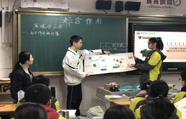 在与兰素芬老师师徒结对的一学期里,赵老师谦虚好学、勤奋上进、成长迅速。在学期末“青蓝工程”汇报课展示活动中效果显著。汇报课以讨论“光合作用的原理和应用”为主线,师生互动,共同学习。分组教学分中有合、合中有分,既体现了学生个人独特的观点,也展示了合作学习的结晶。