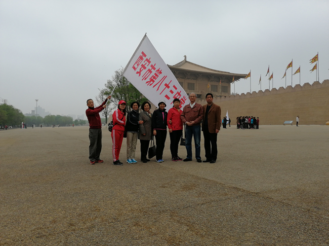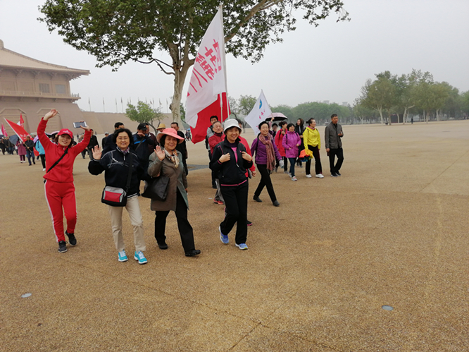 早上9:30,“快乐每一天,健步行”活动启动仪式正式开始,市教育局组织人事处钟卫国副处长和退协王小平主任分别致辞,大家聚集在大明宫丹凤门广场,很久没有见面的老同志都很高兴,他们互相合影留念和交谈,似乎有说不完的话。