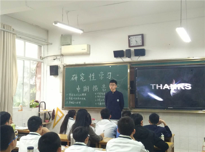 2019年4月12日下午后两节课,我校高一年级各班顺利进行了研究性学习课题中期汇报,对前期同学们的研究性学习进行一次统一的检查和督导。汇报过程分为三个阶段进行,首先是学生汇报,其次是评委提问学生答辩,最后是评委点评。
