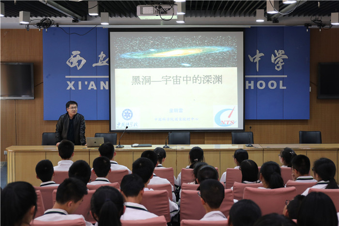 2019年4月10日晚,全球多地同步发布的人类首张黑洞照片,激发了人们对宇宙的好奇,以及对于科学、天体物理的兴趣。基于此,我校邀请中国科学院国家授时中心研究员童明雷博士于4月16日下午为我校高一年级学生做了主题为《黑洞——宇宙中的深渊》的科普专题讲座。讲座内容包括宇宙中的天体、相对论简介、黑洞和虫洞四个方面。通过大量的数据分析、生动形象的图片展示和深入浅出的讲解,童博士把脉冲星、虫洞、黑洞等艰涩难懂的天文学知识变成了同学们的一次充满乐趣的宇宙探奇之旅,极大地激发了同学们对宇宙尖端科学研究的好奇心。