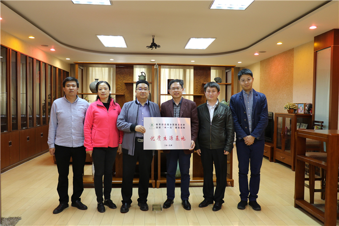2019年4月29日下午,天朗气清,春光明媚,为探讨考试招生制度改革形势下高校与高中人才培养与招生宣传对接机制,华中农业大学文法学院党委副书记张永卓、食品科学技术学院副教授李二虎和文法学院本科生辅导员刘清华一行莅临我校参观交流,并授予我?!坝判闵吹亍背坪?。我校沙涛副校长代表学校接受了授牌,我校教务处主任王岚、副主任苏元平对三位老师的来访热情接待。