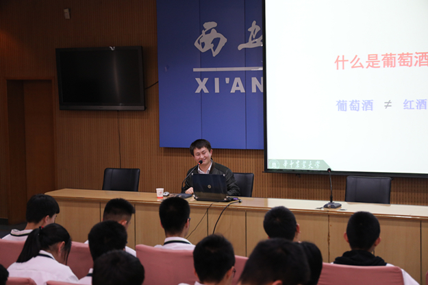 授牌仪式后,李二虎副教授还为我校高一年级部分学生进行了科普讲座。他主讲的题目是《葡萄与葡萄酒之美》。李教授引人入胜的情景设置,深入浅出的讲解,风趣幽默的语言,极大地激发了同学们了解葡萄种植、了解葡萄酒的酿制、了解我国农业发展的兴趣。他分别从生命之美、个性之美及和谐之美三个角度出发,让同学们充分了解了葡萄酒的起源与发展、葡萄酒的质量与风格以及如何品尝与鉴赏葡萄酒。最后,李教授以酒喻人,以葡萄酒的品格激励各位同学要做一个热爱生命的人,做一个有个性的人,做一个与他人、与社会和谐相处的人。精彩的讲座赢得了同学们阵阵掌声。