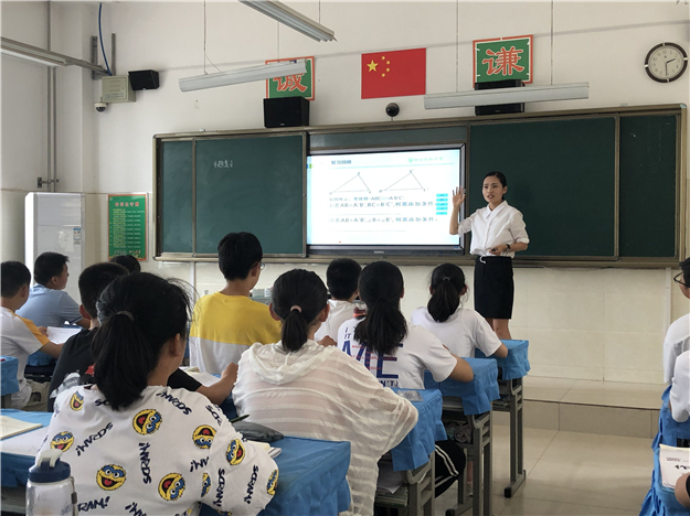 首先,由来自西安行知中学的刘维维老师带来了一节七年级专题复习课《旋转型全等三角形》。在这节课的教学中,刘老师独辟蹊径,设计新颖,科学整合教学内容,合理设计例题、习题,尤其是数学模型的建立及几何画板的使用完美突破难点、突出重点。她将教材中的较难的旋转型全等融于学生熟知的一个基本图形之中,将丰富的基本图形中的各种元素关系巧妙置于常用的图形研究方法之中,将抽象思维的训练立足于旋转全等具体问题的破解之中,将数学的核心素养落实在学生们不断探索之中,恰当使用几何画板,展示了图形变换奇妙之美,把学生迅速引入逐层深入的探究中,从而实现了有效教学,收到很好的课堂效果,得到大家一致的赞誉。