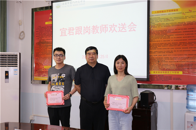 参加此次欢送会的有西安市第八十三中学校级领导、中层干部、指导教师代表,宜君县副县长温海龙、县教科体局局长李延生和县高级中学校长杨伟峰,以及跟岗的五位教师。本次欢送会由我校沙涛副校长主持。