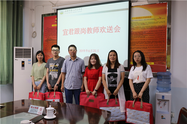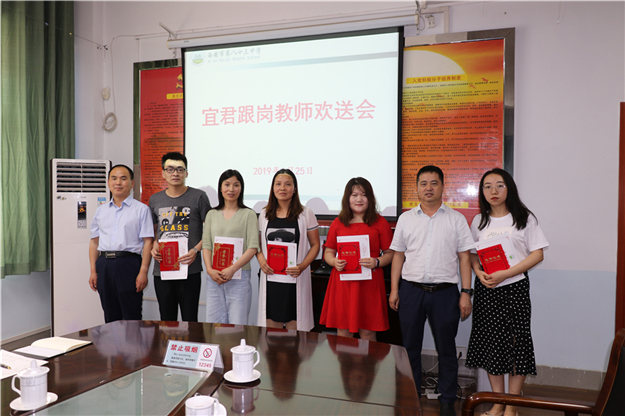 按照两校的帮扶协议,本学期宜君县高级中学继续派驻我校跟岗实习教师。一学期来,在学校领导的关怀指导下,在教务处及各部门的精心安排下,宜君高级中学派至我校跟岗学习的第六批教师的培训工作圆满完成。6月25日下午,我校在图书科技楼二楼会议室为本学期跟岗学习教师召开了欢送会。