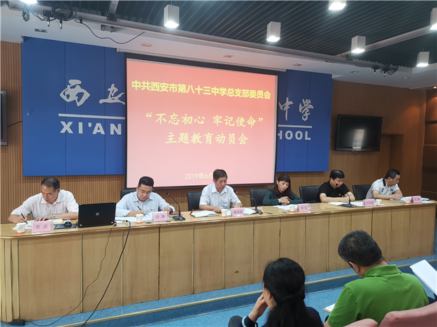 按照《中共西安市教育局委员会印发<关于开展“不忘初心、牢记使命”主题教育的实施方案>的通知》精神和局党委6月14日会议要求,6月29日下午,我校在多功能厅召开了“不忘初心、牢记使命”主题教育动员会。市教育局“不忘初心、牢记使命”主题教育联系督导组第六小组成员、市教育局基教二处刘红处长、刘辉副校长出席会议,校党总支书记李瑞民、校长刘忠建、副校长沙涛、李勇以及全体党员参加会议。会议由党总支委员、校长刘忠建主持。