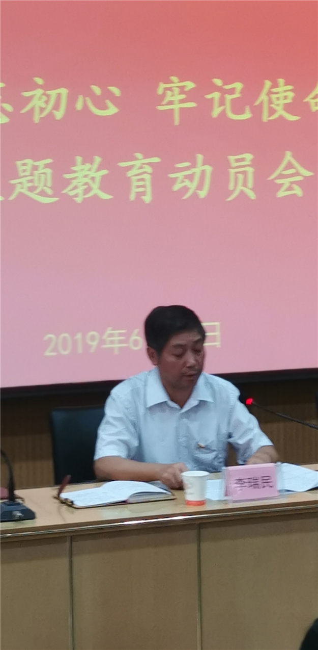 会上,校党总支书记李瑞民进行了动员讲话。李瑞民书记指出,开展“不忘初心、牢记使命”主题教育的根本任务是深入学习贯彻习近平新时代中国特色社会主义思想,锤炼忠诚干净担当的政治品格,团结带领全校党员干部、师生员工为实现学校改革发展共同奋斗。要求全体党员和干部要按照“守初心、担使命,找差距、抓落实”的总要求,扎实推进主题教育,真正实现理论学习有收获、思想政治受洗礼、干事创业敢担当、为民服务解难题、清正廉洁作表率的目标。