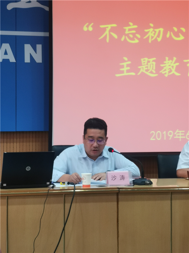 随后,党总支委员、副校长沙涛对学校开展“不忘初心、牢记使命”主题教育做出具体安排部署,明确了组织领导、重点工作、时间安排和具体要求。