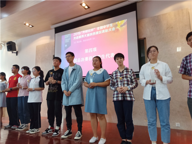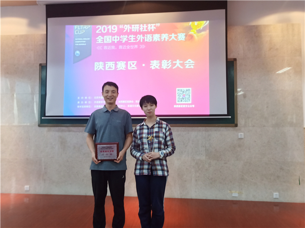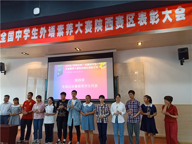 9月8日,我校董轩老师带领学生陈卓扬在西北工业大学附属中学,参加了2019"外研社杯"全国中学生外语素养大赛陕西赛区表彰大会。本次比赛以全面培养学生的语言能力、学习能力、思辨能力、沟通能力、创新能力、文化修养和国际视野为目标,比赛范围紧扣国家高中阶段英语课程标准。